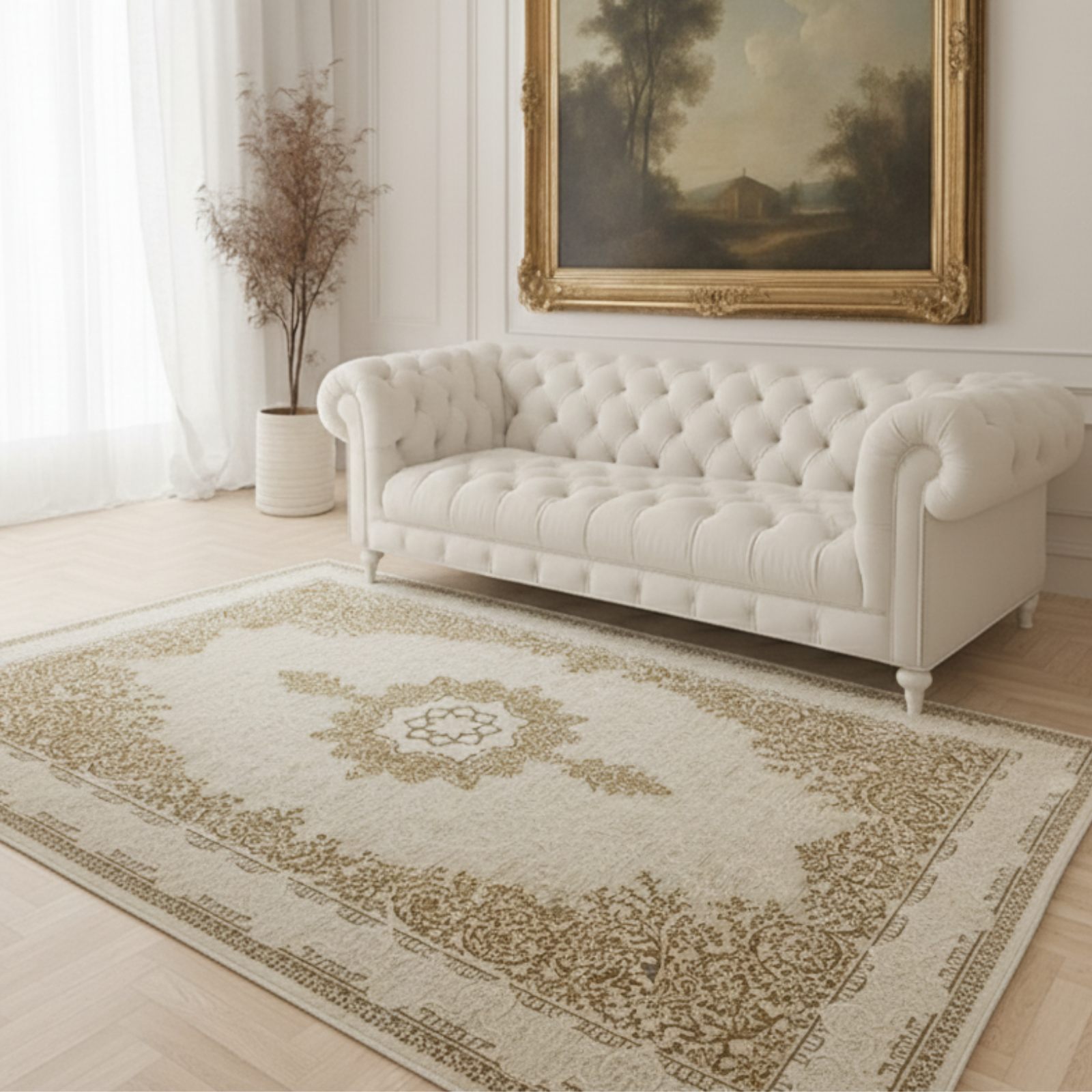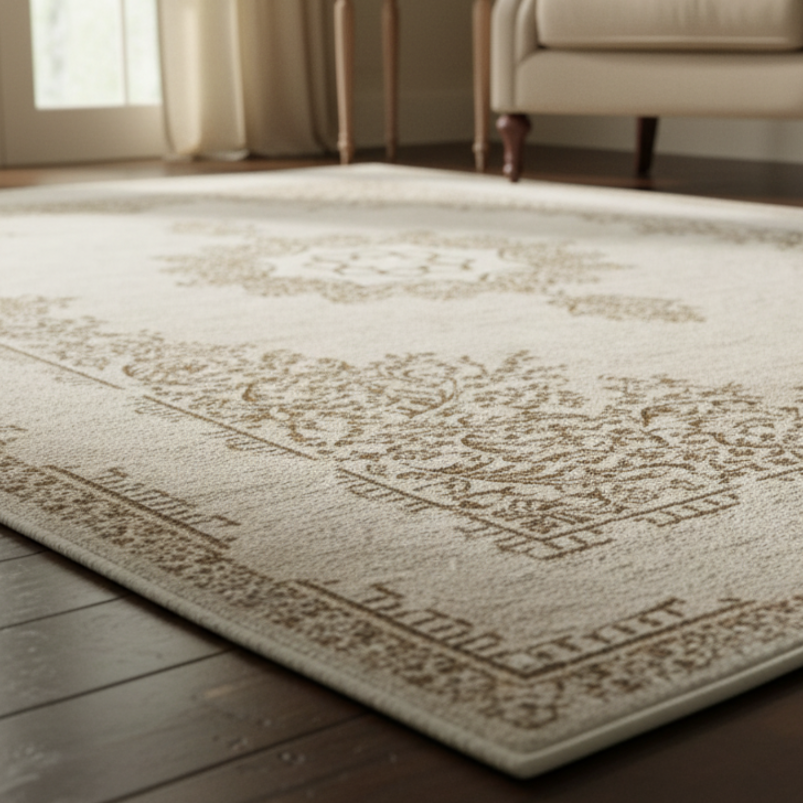 سجادة كلاسيكية مصممة لتحول أي غرفة إلى مساحة أكثر جاذبية وأناقة. تتميز السجادة بثبات ألوانها وقوة خيوطها مما يجعلها خيار عملي ومريح يدوم لفترة طويلة.