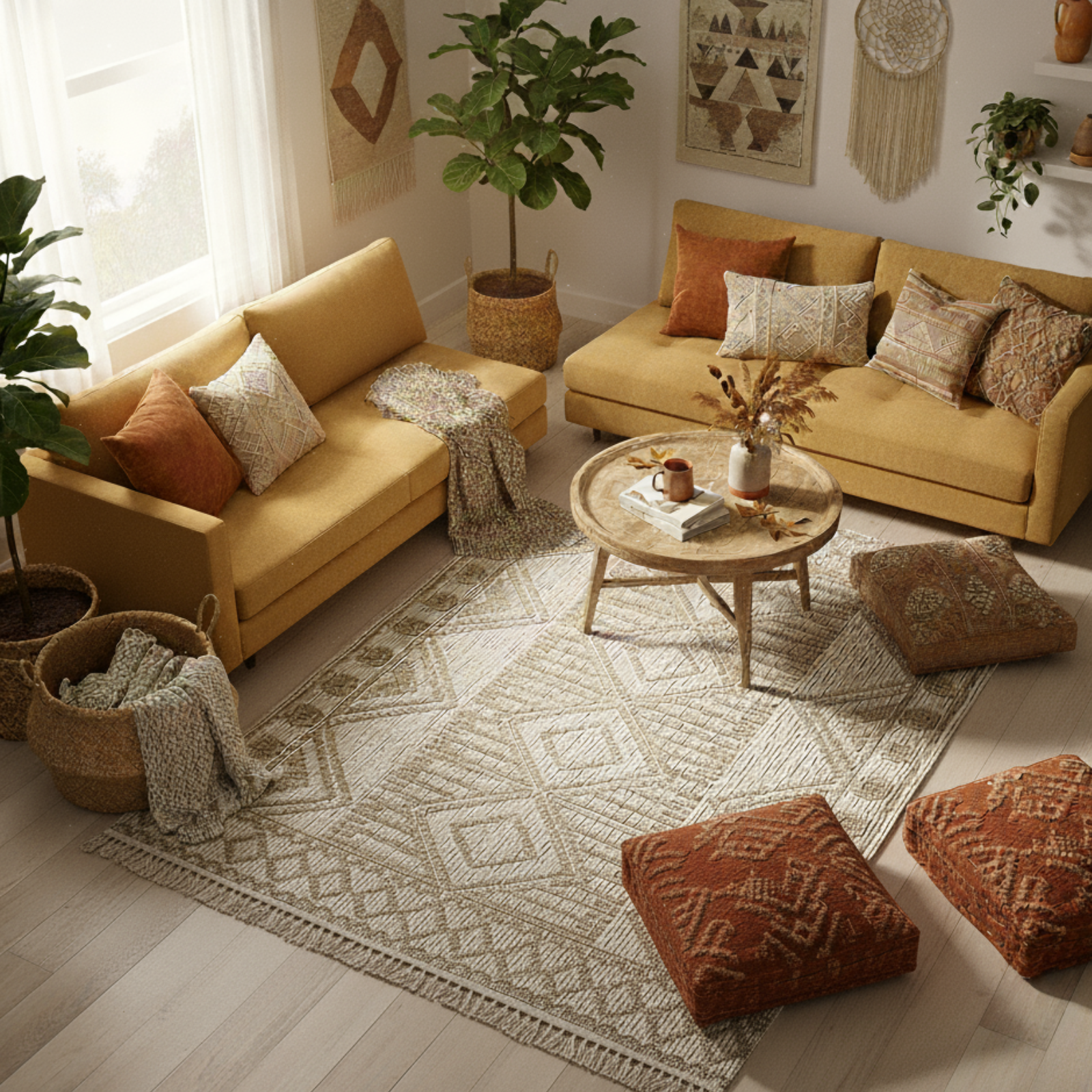A cozy, textured carpet perfect for a bohemian-style.