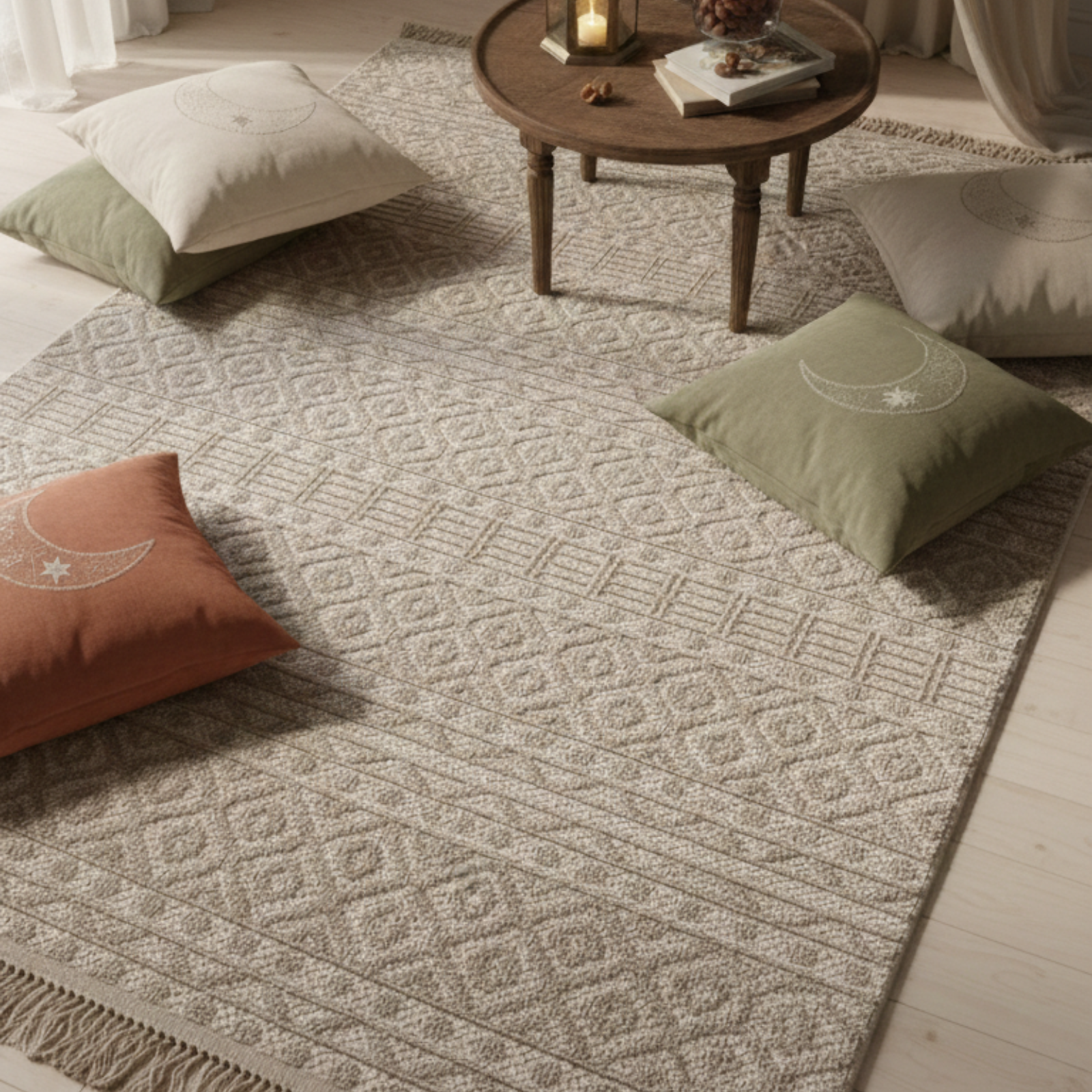 A cozy, textured carpet perfect for a bohemian-style.