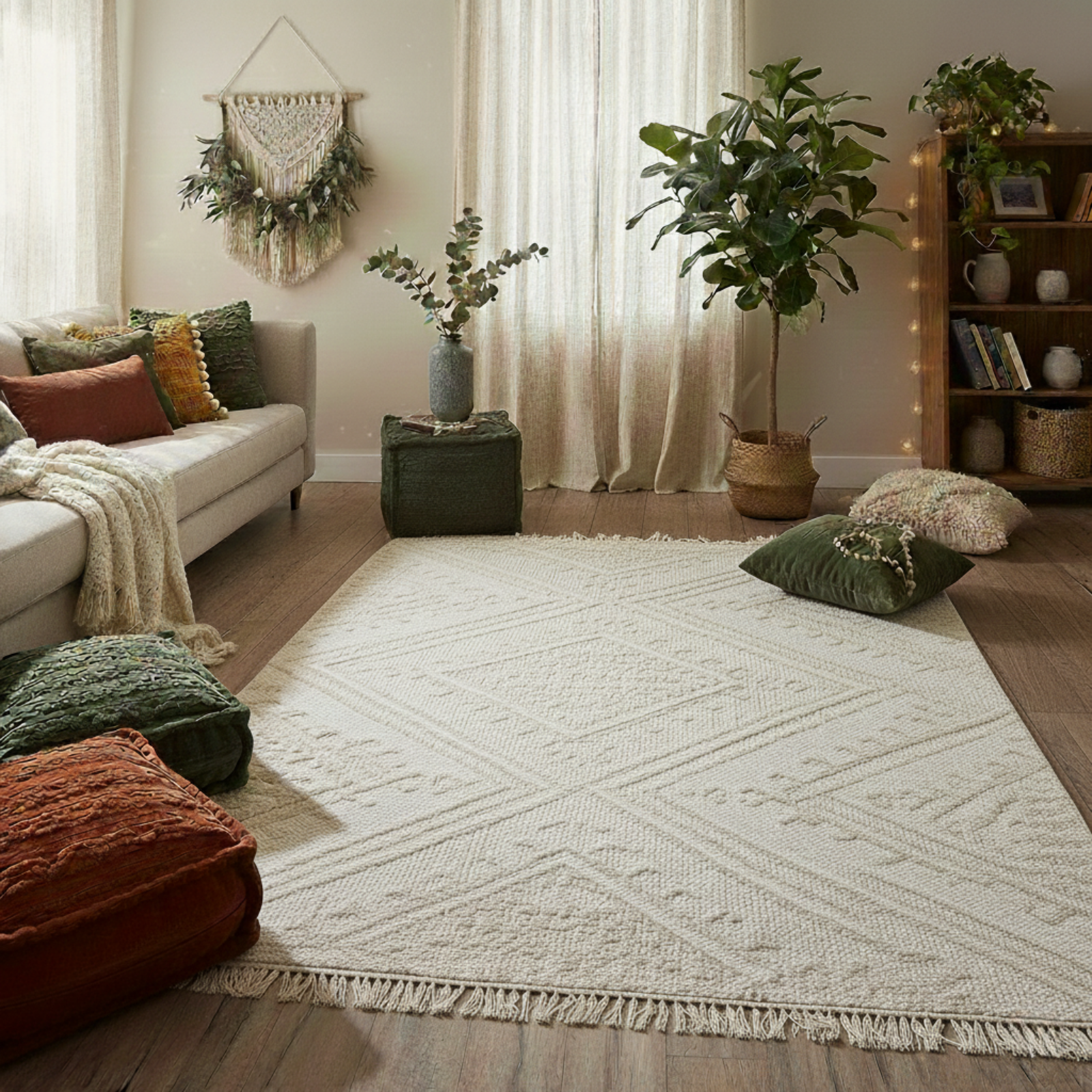 A cozy, textured carpet perfect for a bohemian-style.